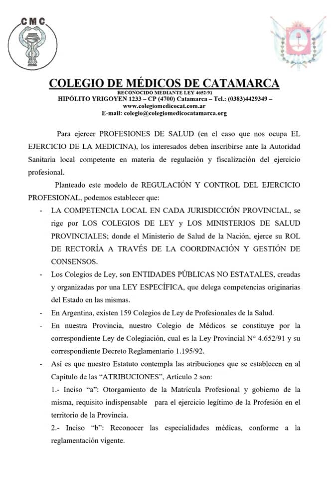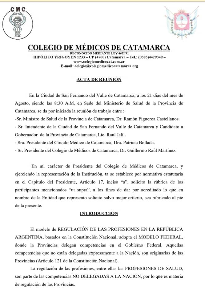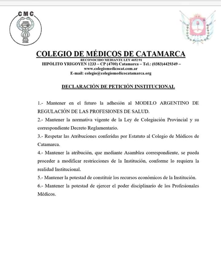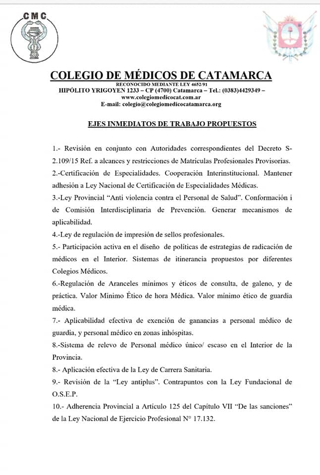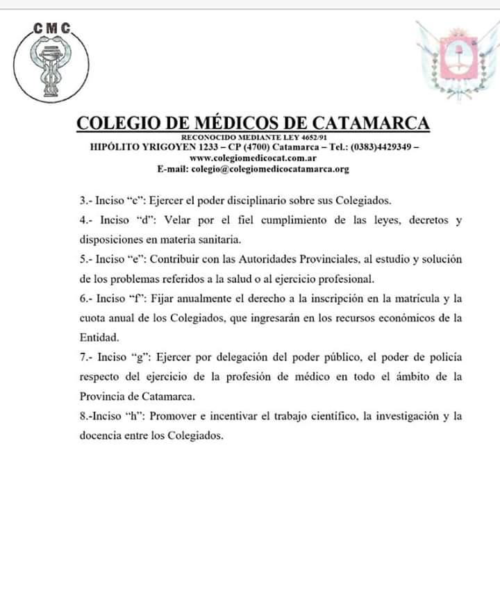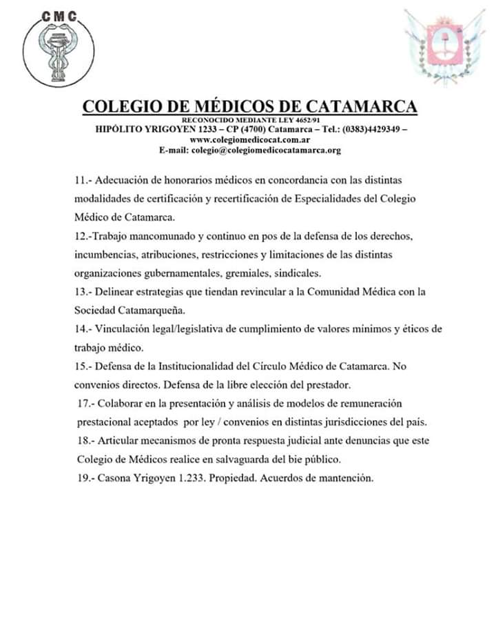 CONSEJO DIRECTIVO COLEGIO DE MÉDICOS DE CATAMARCA.