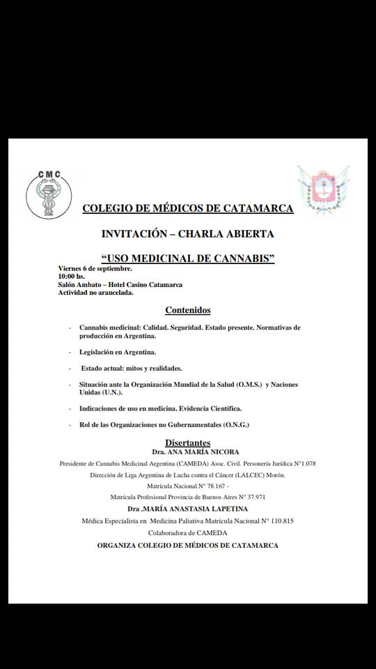 Instalamos el tema de Cannabis Medicinal, en nuestra Provincia, a través de la inédita conferencia abierta al público y gratuita, que nos brindara la Asociación de Cannabis Medicinal de Argentina.