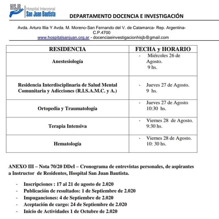 LLAMADO A CONCURSO PARA JEFE DE RESIDENCIAS e INSTRUCTORES de RESIDENTES del HOSPITAL SAN JUAN BAUTISTA ➡️Compartimos Requisitos y Cronogramas de entrevistas. ➡️Informes e Inscripción desde el Martes 18 de Agosto al Viernes 21 de Agosto. ➡️De 9:30 a 14 hs. En Departamento de Docencia e Investigacion del Hospital San Juan Bautista. ➡️Presentar Documentación por […]
