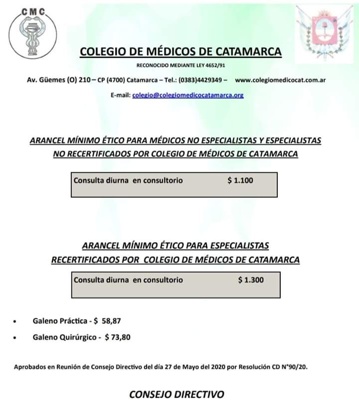 AUMENTO DE ARANCELES MÍNIMOS ÉTICOS y GALENOS de PRÁCTICA y QUIRÚRGICOS