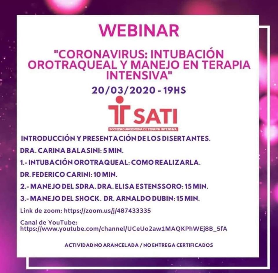 ATENCIÓN COLEGAS ¡¡¡¡IMPORTANTE!!! A LAS 19 HS. 35 MINUTOS DE CAPACITACIÓN GRATUITA CON LOS MEJORES ESPECIALISTAS DEL PAÍS EN UN RATO A LAS 19 HS. POR CANAL DE YOUTUBE TEMAS: – ¿COMO INTUBAR UN PACIENTE COVID – 19? – MANEJO DEL SINDROME DE DISTRÉS RESPIRATORIO DEL ADULTO ( S.D.R.A.) Y SHOCK EN COVID – 19 […]