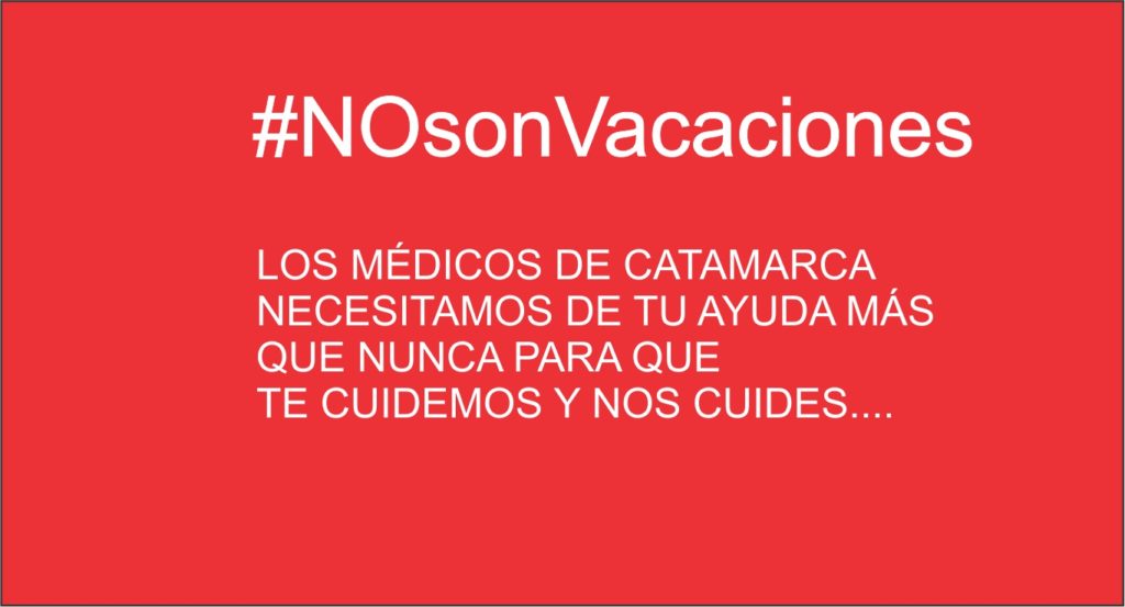 LA POBLACIÓN DE CATAMARCA Y EL EQUIPO DE SALUD JUNTOS…. PARA SALIR ADELANTE…. EN CATAMARCA SIEMPRE DIJIMOS QUE SOMOS POCOS Y NOS CONOCEMOS TODOS… ENTONCES ES MÁS FÁCIL QUE NOS AYUDEMOS… LOS MÉDICOS DE CATAMARCA NECESITAMOS DE TU AYUDA MÁS QUE NUNCA PARA QUE TE CUIDEMOS Y NOS CUIDES…. #NOSONVACACIONES