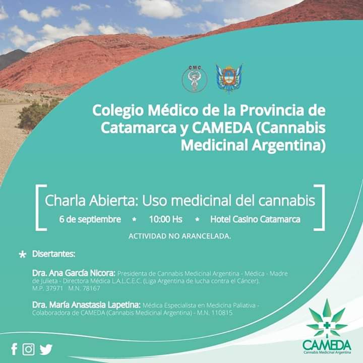 SE LLEVÓ A CABO LA CHARLA “USO MEDICINAL DE CANNABIS Con la presentación de la Dra. Ana García Nicora, Preidente de Cannabis Medicinal Argentina (CA.MED.A.), y de la Dra. Anatasia Lapetina se desarrolló el temario previsto, con la presencia de Autoridades Sanitarias,Judiciales, Legisladores, Fuerzas de Seguridad, Docentes, Farmacéuticos, Bioquímicos, representantes de I.N.T.A., Colegios Profesionlaes, O.N.G., […]