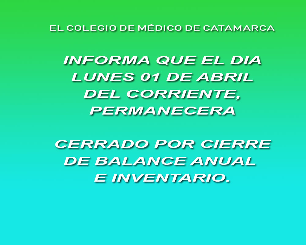 Debido a la toma de Exámen de Certificación de Especialidad en Clínica Médica/Medicina Interna, del Colegio de Médicos de Catamarca, Sociedad Argentina de Medicina, y Asociación de Medicina Interna de Catamarca (A.M.I.C.A) filial S.A.M. , y Jornadas de Medicina Interna/ Clínica Médica que se llevarán a cabo el próximo viernes 5 en el Salón […]