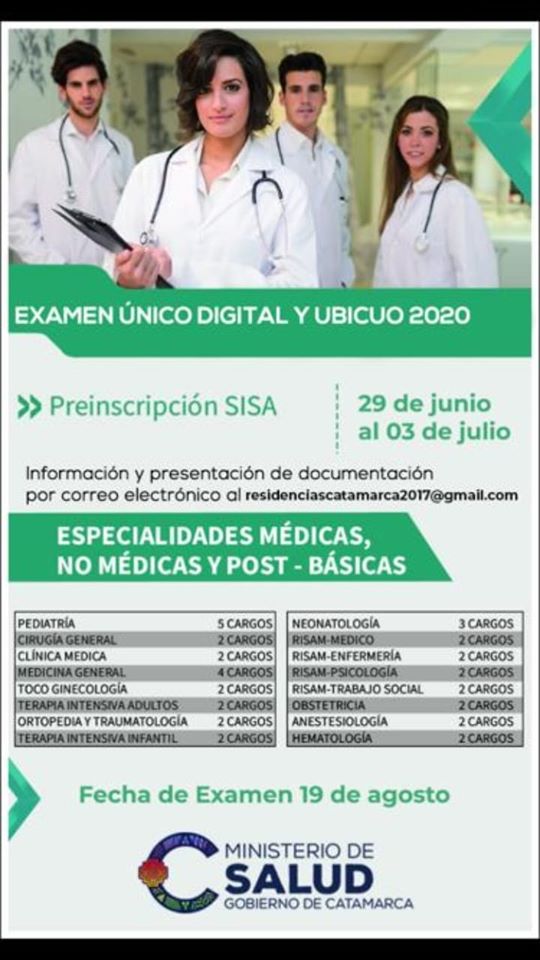 CONVOCATORIA A EXÁMEN DE RESIDENCIAS PROVINCIALES AÑO 2.020