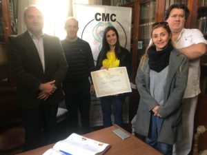 Médica MATIENZO YAÑEZ, María Roxana recibe certificación de Especialista en Clínica Médica, en la foto junto a integrantes del Consejo Directivo y la Presidente de A.M.I.Ca. Médica Erika Álvarez.