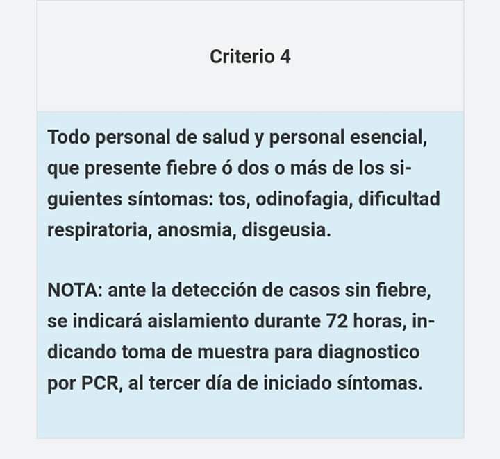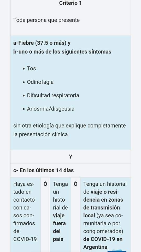 COMPARTIMOS LOS NUEVOS CRITERIOS DE SOSPECHA DE COVID 19 DEL MINISTERIO DE SALUD DE LA NACIÓN