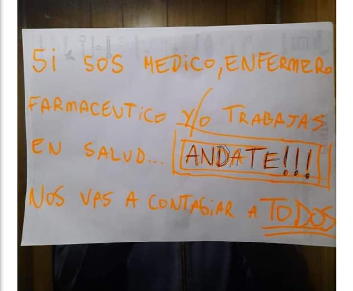 Expresamos nuestro más enérgico repudio a la actitud ANTI SOLIDARIA y DISCRIMINADORA ejercida contra Médicos e Integrantes de Equipos de Salud, por anónimos ciudadanos, que pretenden que algunos Colegas, dejen de habitar edificios por “miedo al contagio”, en distintas Ciudades del País.