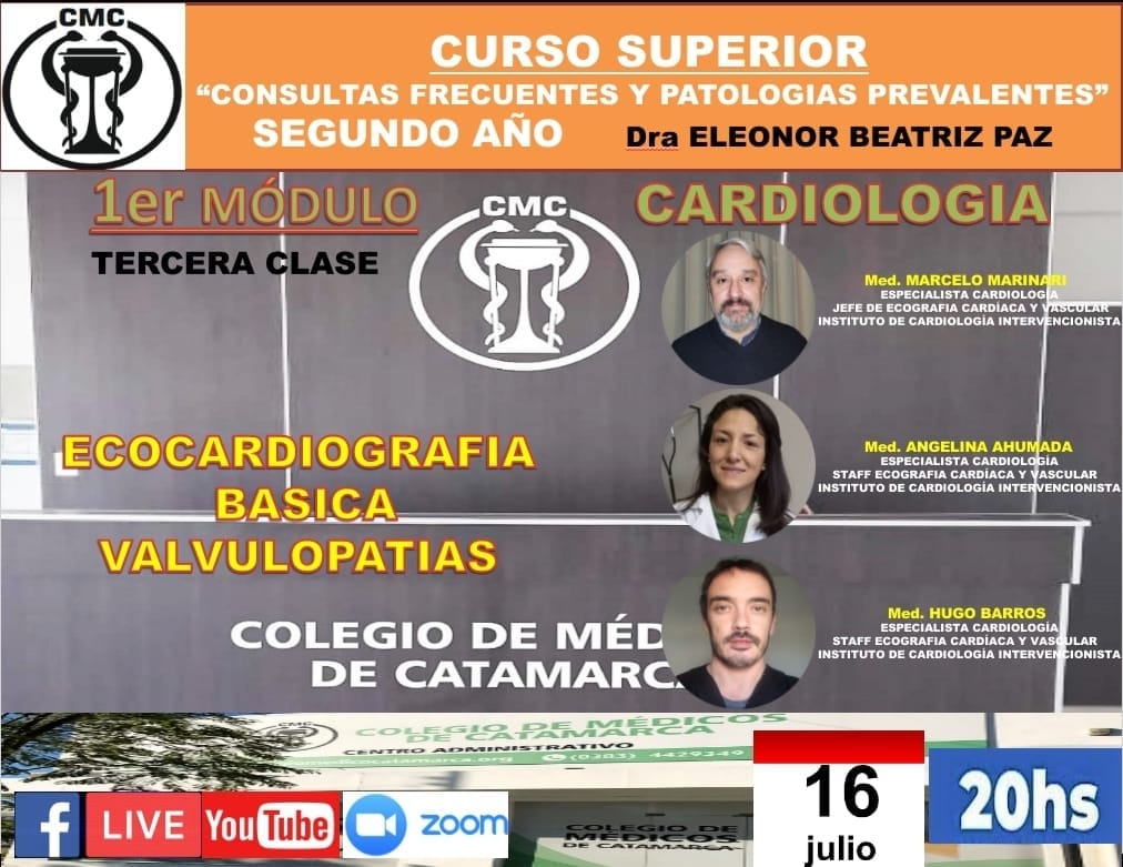 Tercera Clase ‘Módulo de Cardiología” , segundo año. Curso Superior de “consultas frecuentes y patología prevalente” del Colegio de Médicos de Catamarca. “Dra. Eleonor Beatriz Paz” In memoria.